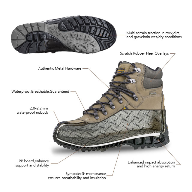 Το εσωτερικό παπούτσι είναι καλυμμένο με γερμανικές αδιάβροχες κάλτσες Sympatex που αναπνέουν και αδιάβροχα, διατηρώντας τα πόδια σας στεγνά ανά πάσα στιγμή.