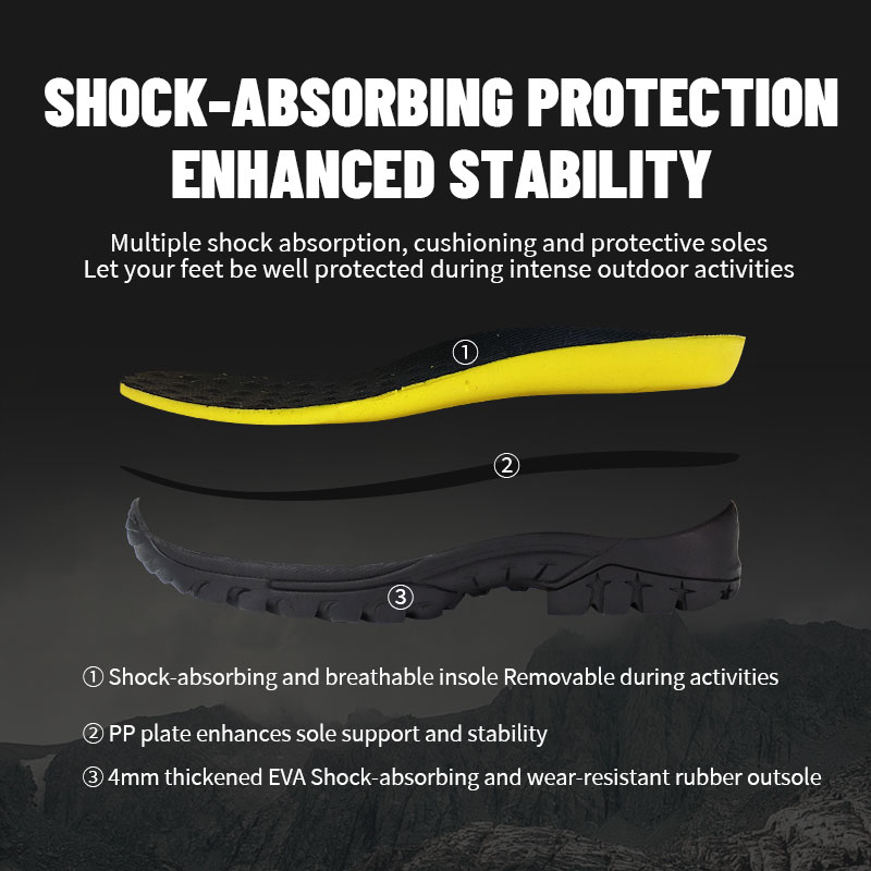 ②Ενισχυμένο με πλάκα PP για επιπλέον στήριξη κάτω από το πέλμα—έτσι κάθε βήμα είναι σταθερό και ελεγχόμενο.