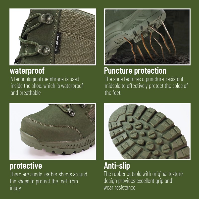 Αυτές οι αδιάβροχες μπότες μάχης με προστασία από διάτρηση είναι σε απόθεμα και έτοιμες για αποστολή, με παραγγελίες που ξεκινούν από μόλις 10 ζευγάρια. Για περισσότερες λεπτομέρειες ή ερωτήσεις σχετικά με τις τιμές, μη διστάσετε να επικοινωνήσετε ανά πάσα στιγμή. Η προσαρμογή είναι επίσης διαθέσιμη με ελάχιστη παραγγελία 800 ζευγών. Και αυτό το μοντέλο έχει τα ακόλουθα πλεονεκτήματα: