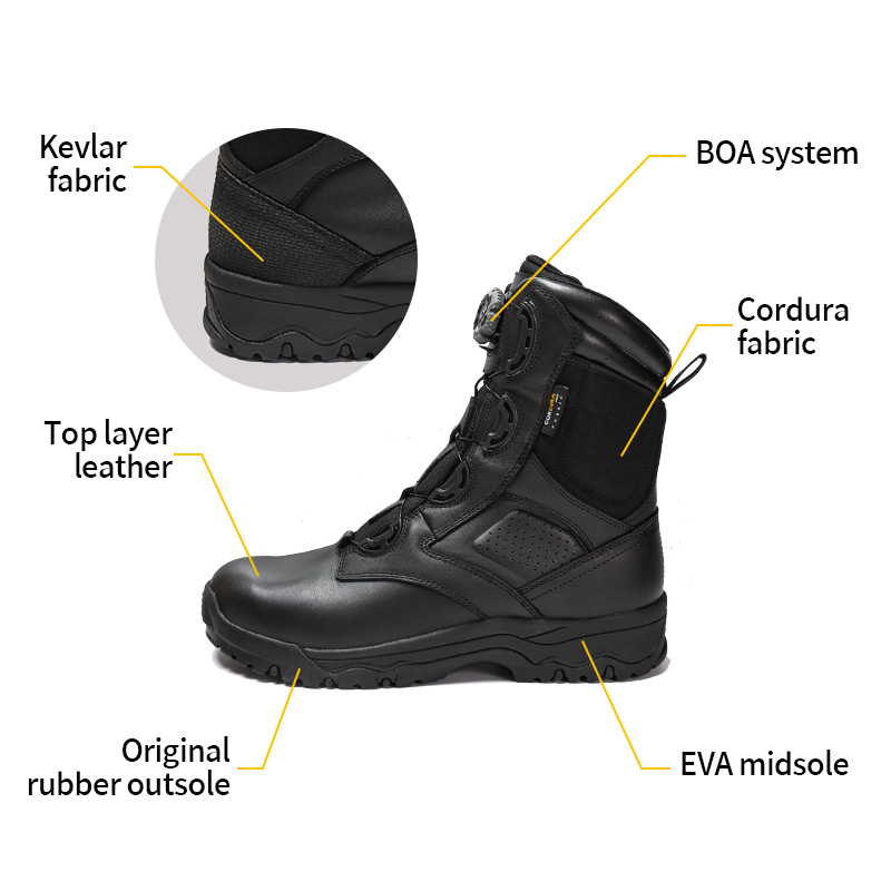 Αυτά τα Quick-on/off System Police Boots είναι σε απόθεμα και έτοιμα για αποστολή, με παραγγελίες που ξεκινούν από μόλις 10 ζευγάρια. Για περισσότερες λεπτομέρειες ή ερωτήσεις σχετικά με τις τιμές, μη διστάσετε να επικοινωνήσετε ανά πάσα στιγμή. Η προσαρμογή είναι επίσης διαθέσιμη με ελάχιστη παραγγελία 800 ζευγών. Και αυτό το μοντέλο έχει τα ακόλουθα πλεονεκτήματα: