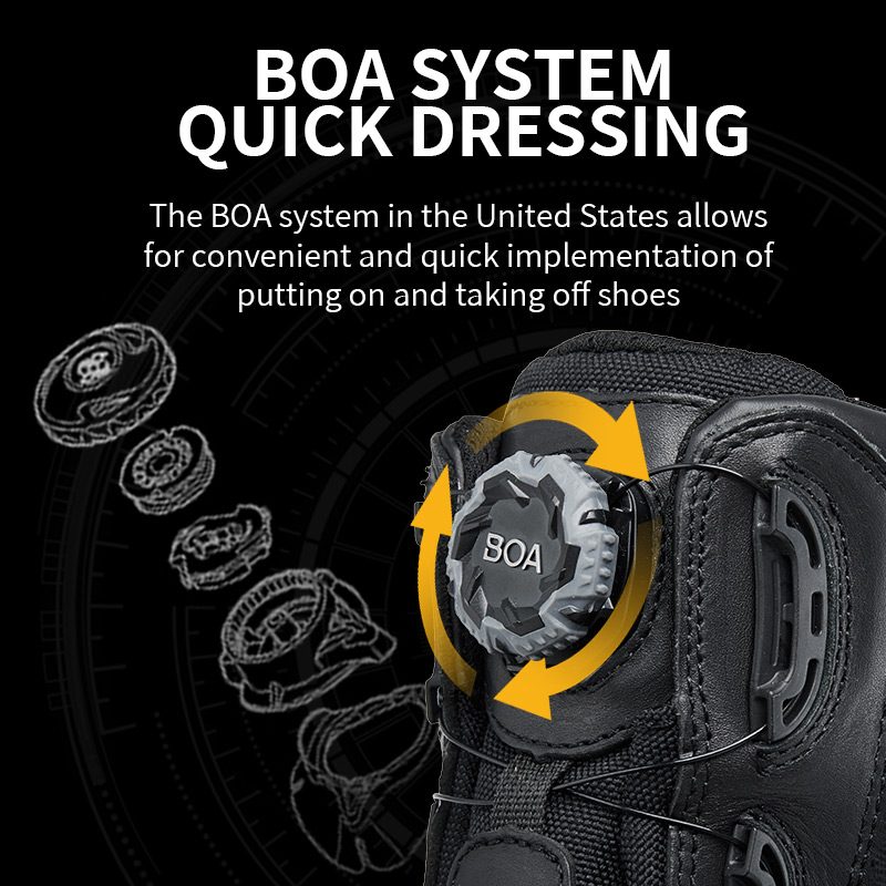 Το σύστημα BOA κάνει το on/off αβίαστο: γρήγορη περιστροφή για σύσφιξη, τράβηγμα για απελευθέρωση. Χωρίς κορδόνια, χωρίς ταλαιπωρία.